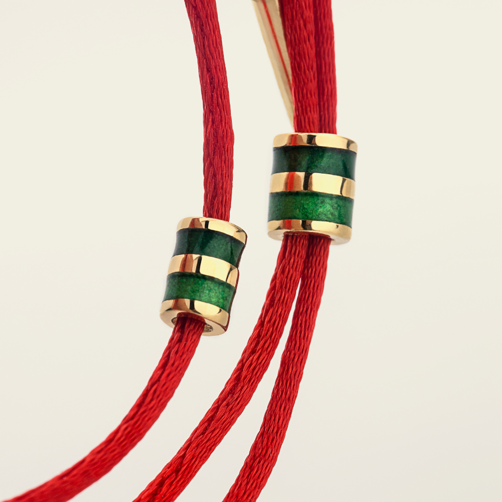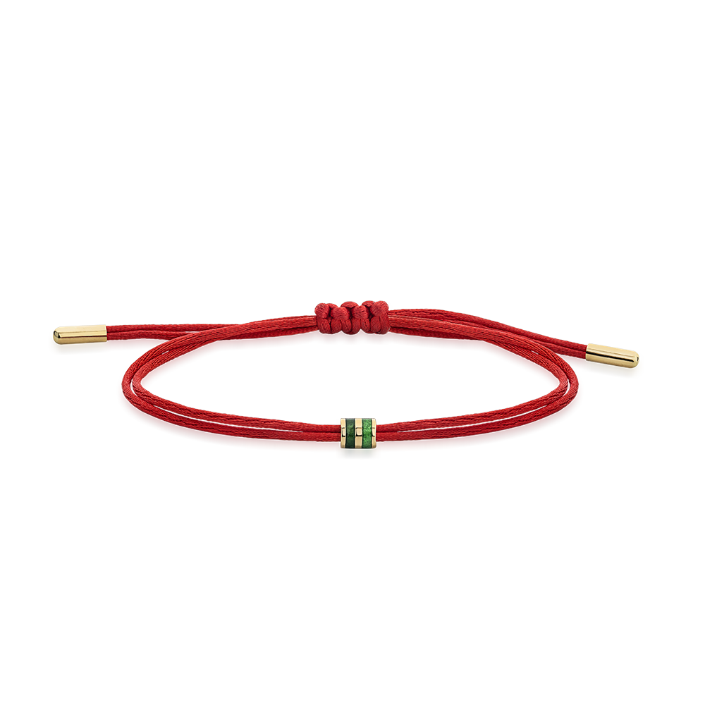 A joia do momento: Pulseira em Fio de Seda Vermelho Duplo com Pingente em Ouro 750/18K