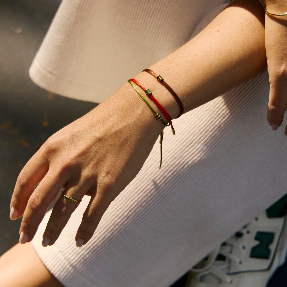 - Pulseira feita com duplo fio de seda vermelho