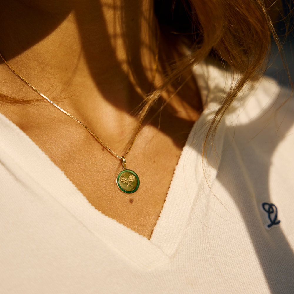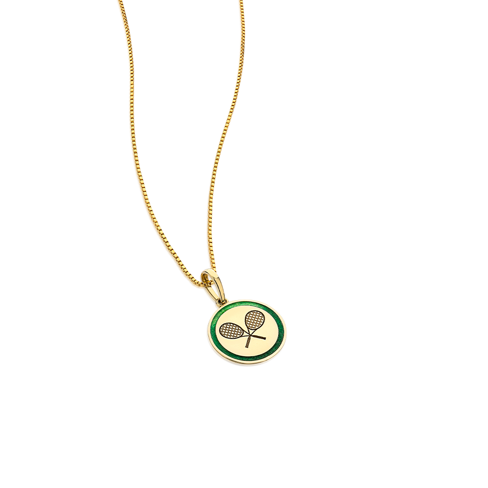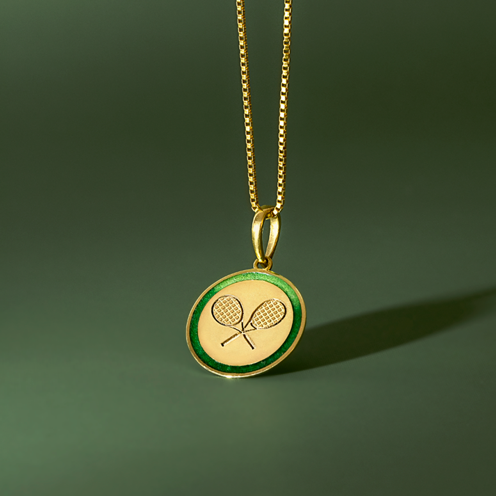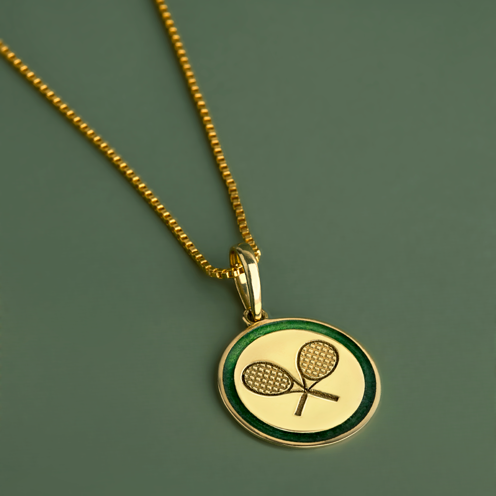 Medalha em Ouro 18k com raquetes de tênis. Joia que une esporte, elegância e exclusividade. Ideal para quem vive o estilo tennis.