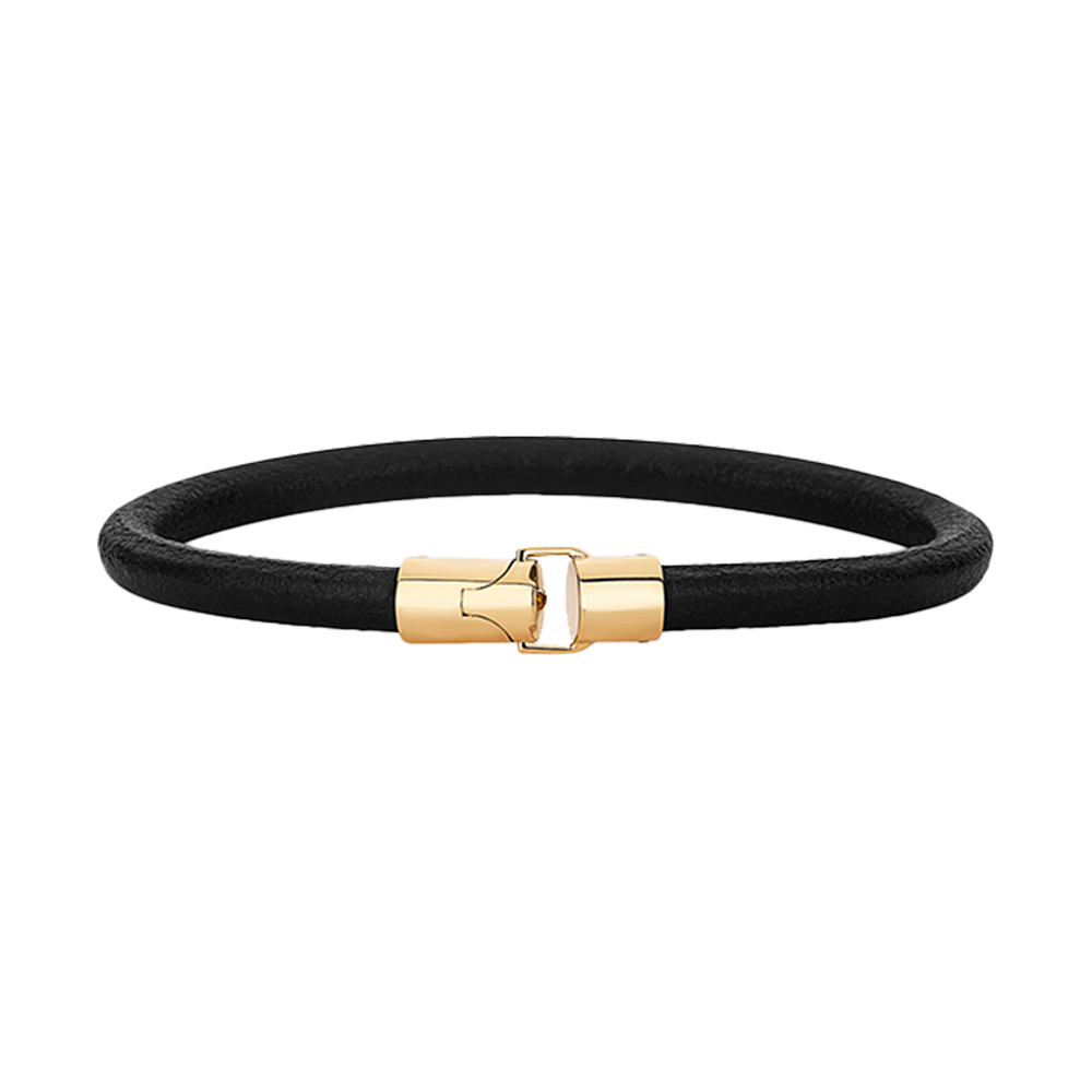 Pulseira de Couro Preto e Ouro 18k - 18:10