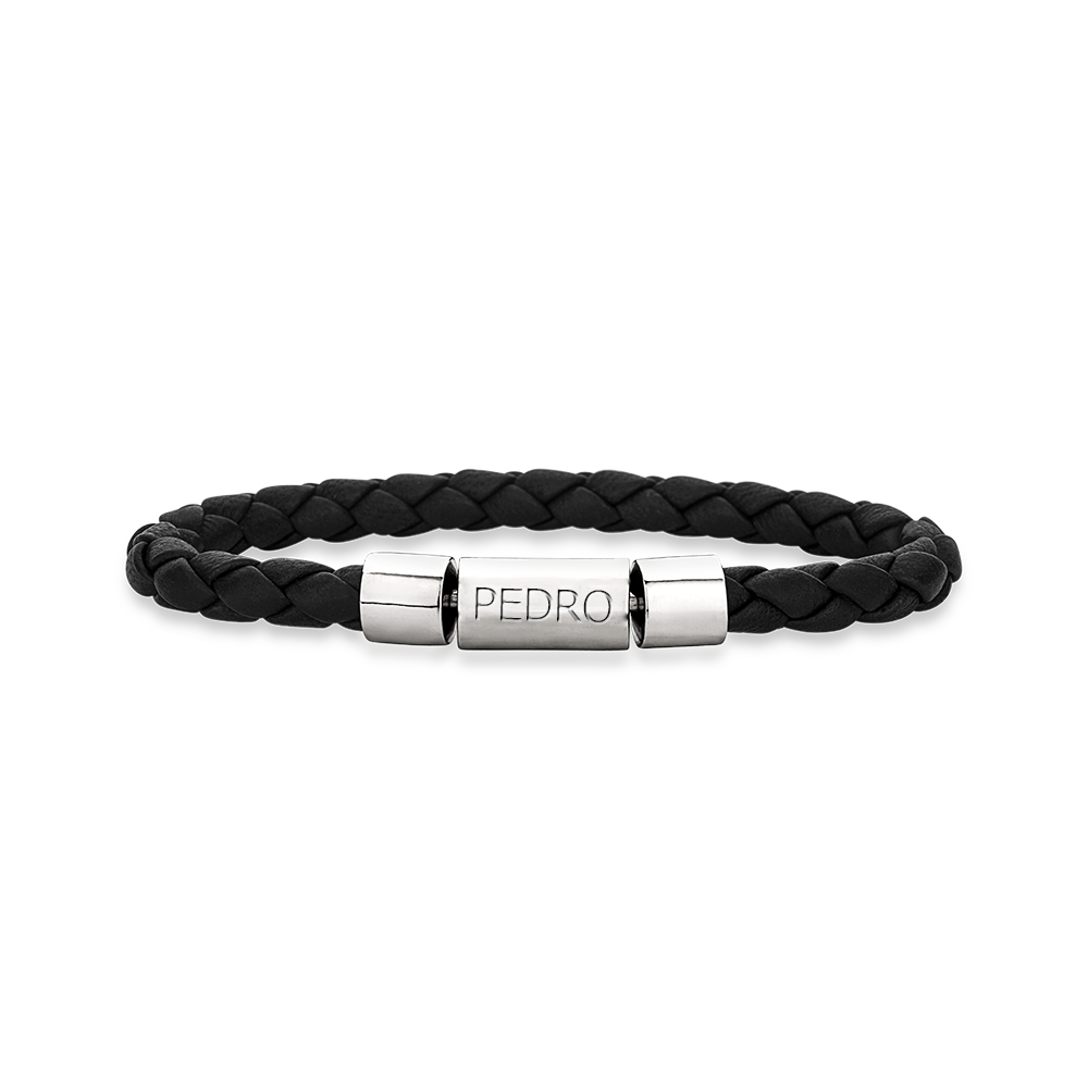 Pulseira Masculina de Couro Preto Personalizado - 737
