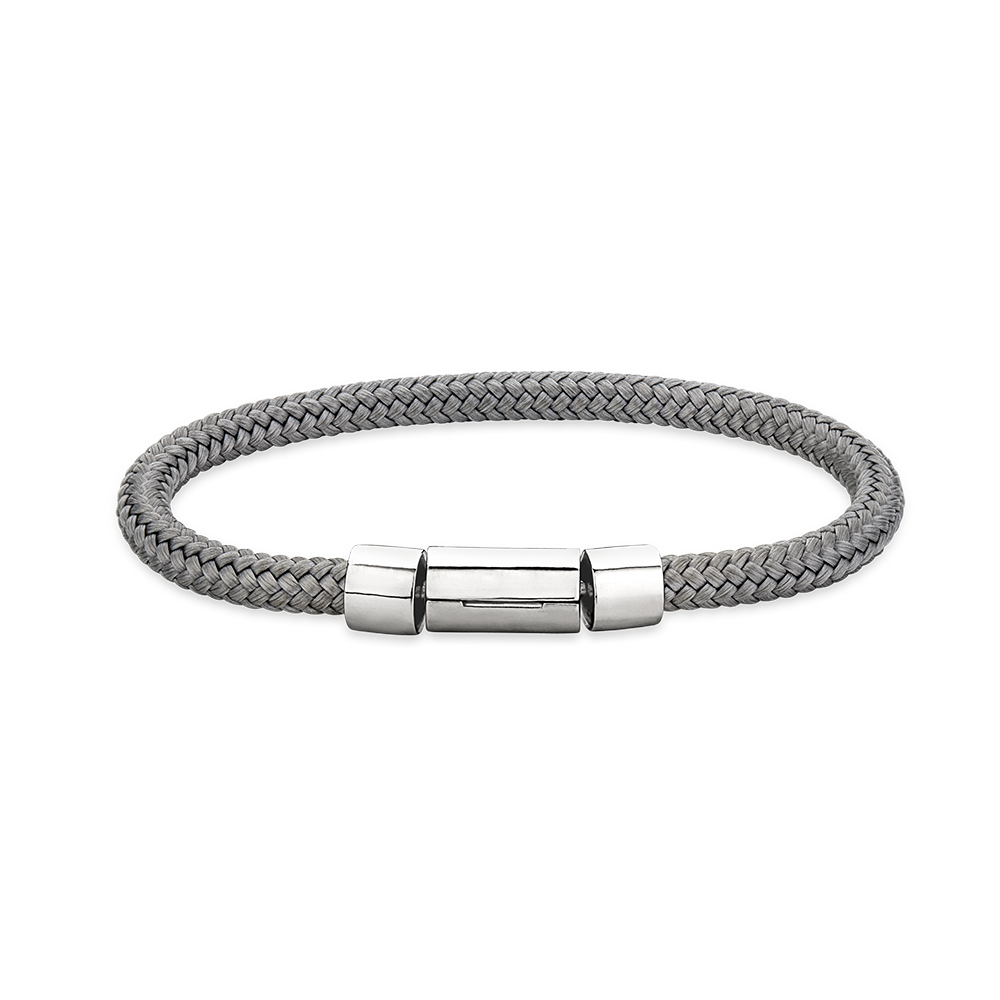 Com acabamento impecável e toque confortável, a pulseira náutica cinza é ideal para o homem contemporâneo que entende que o verdadeiro luxo está na simplicidade bem executada.