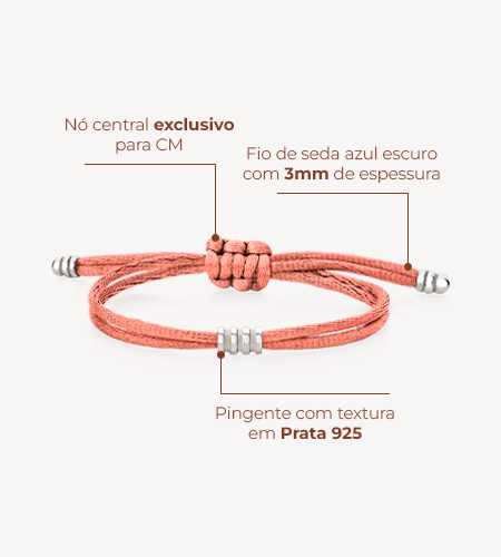 Pulseira em fio de seda bronze com pingente em prata 925. O toque suave e envolvente do fio oferece conforto, enquanto o tom bronze se destaca com elegância.