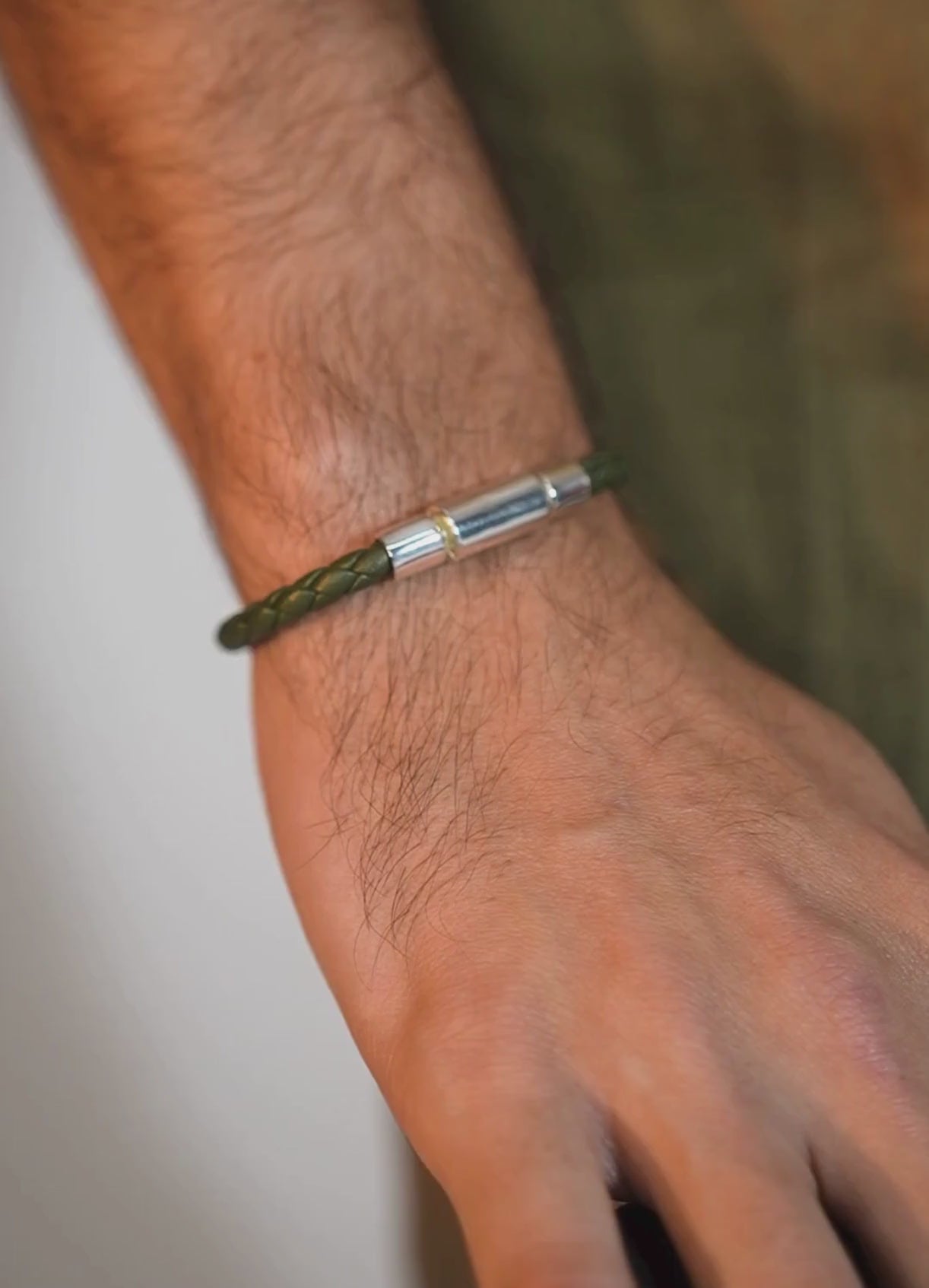 Pulseira masculina 757 em couro italiano legítimo, em tons versáteis que equilibram elegância e atitude.