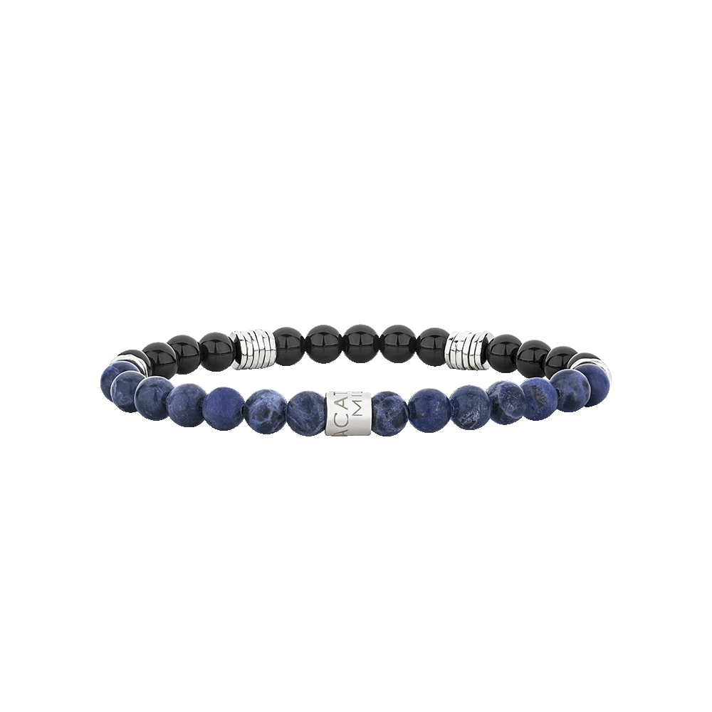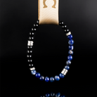 Pulseira Masculina Noronha: Ônix, Quartzo Azul e Discos de Prata 925