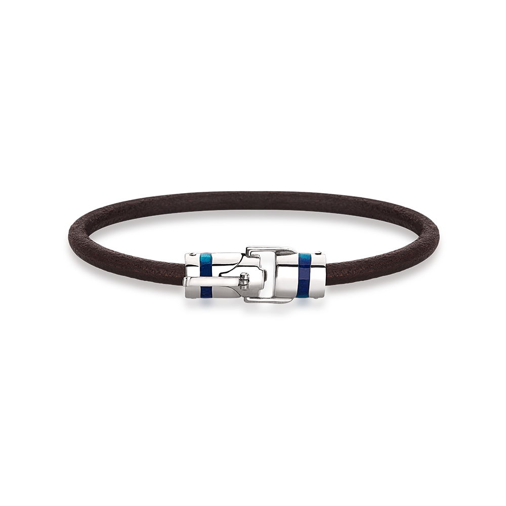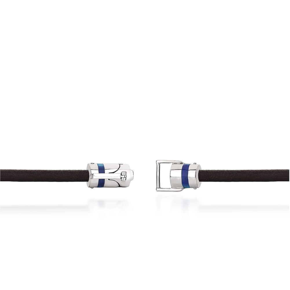 Pulseira em Prata 950 e Couro Natural - 12:00