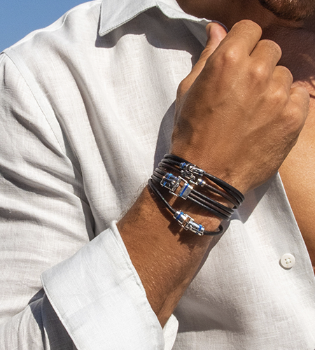 Cada peça é cuidadosamente feita à mão por artesãos qualificados, utilizando apenas materiais nobres e importados — uma combinação que garante durabilidade, sofisticação e o caráter único de cada pulseira.