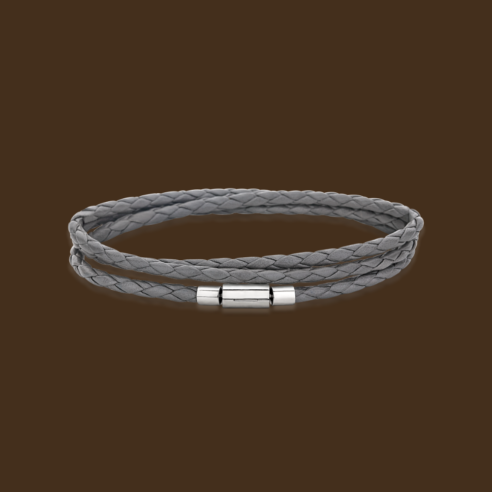 Especial Pulseira Masculina de Couro - 7157 Cinza Trançada
