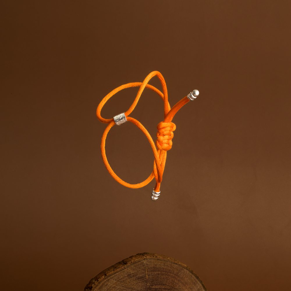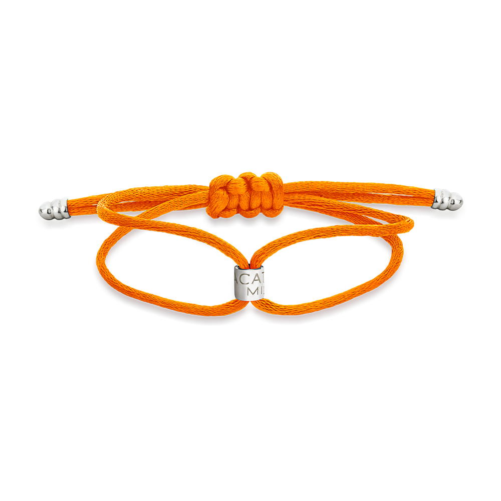 Pulseira Seda Entrelaçada Laranja com Pingente Prata 925