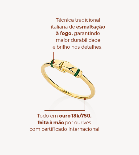 • Detalhes em tons de verde, preto ou marrom desenvolvidos com a técnica italiana de esmaltação a fogo