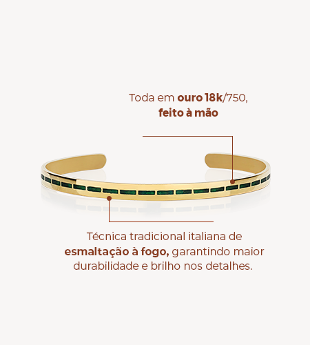 Bracelete todo em ouro amarelo 18k, com detalhes coloridos realizados com a tradicional técnica italiana de esmaltação à fogo.