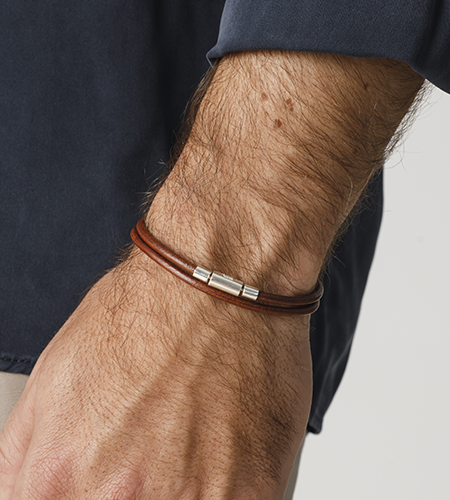 Pulseira masculina em couro italiano legítimo e design de duas voltas: feita para o estilo do seu ritmo, criando uma identidade única e atemporal.