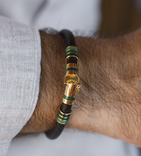 Pulseira de Couro e Ouro 18k - 14:40