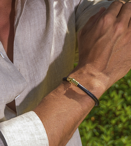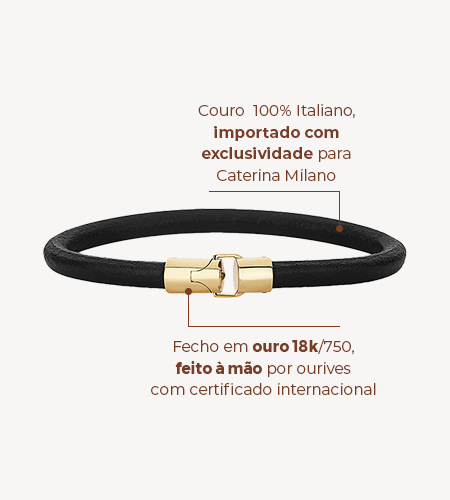 Pulseira de Couro Preto e Ouro 18k - 18:10