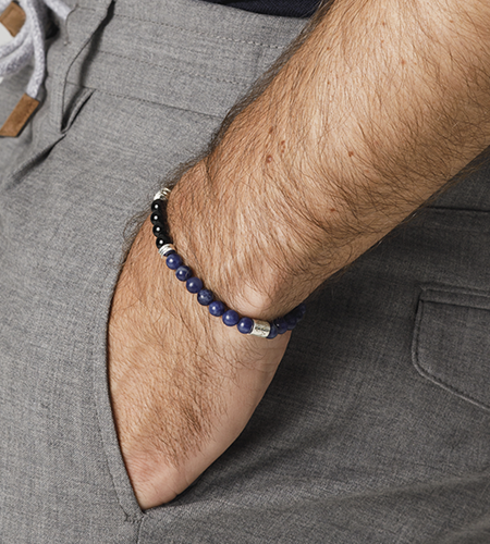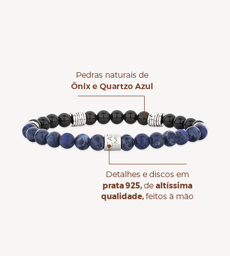 Pulseira Masculina Noronha: Ônix, Quartzo Azul e Discos de Prata 925