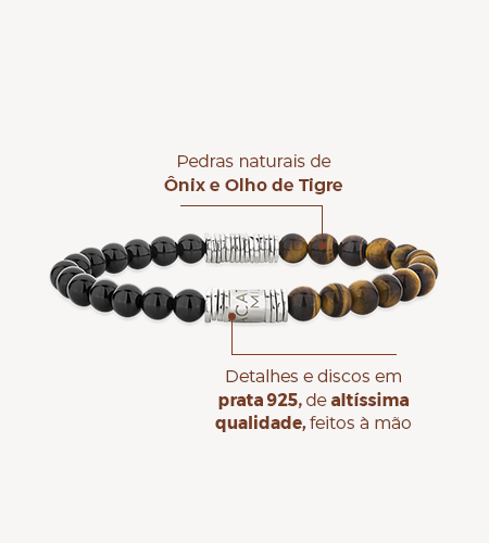 — Com Ônix e Olho de Tigre, ela combina a força silenciosa com a segurança de estar sempre pronto — da rotina ao extraordinário ela acompanha você em qualquer momento.