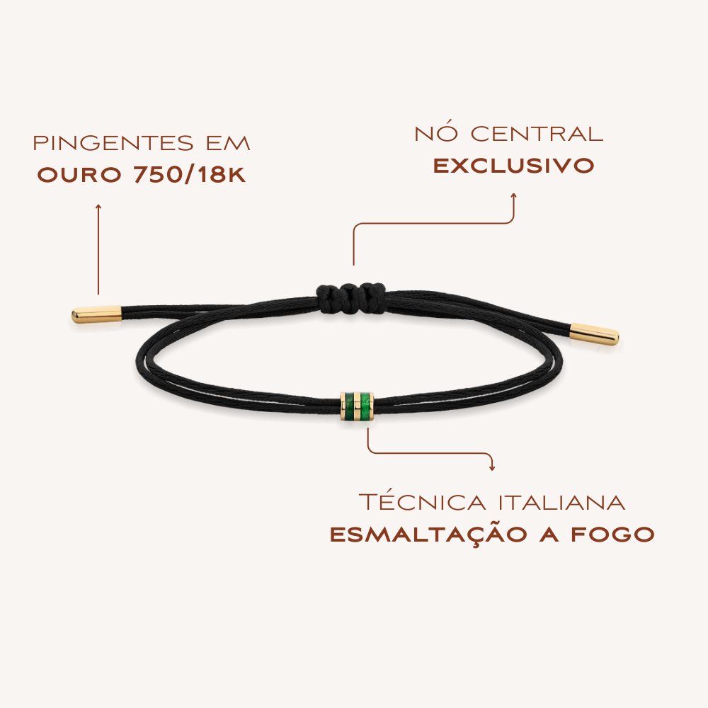 A joia do momento: Pulseira em Fio de Seda Dupla Preto com Pingente em Ouro 18k (750).