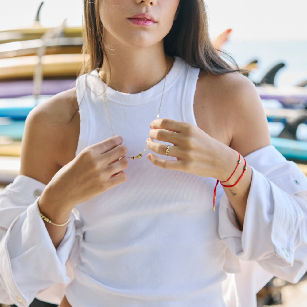 Pulseira de Seda Dupla Preta com Pingente de Ouro 18K – Amuleto