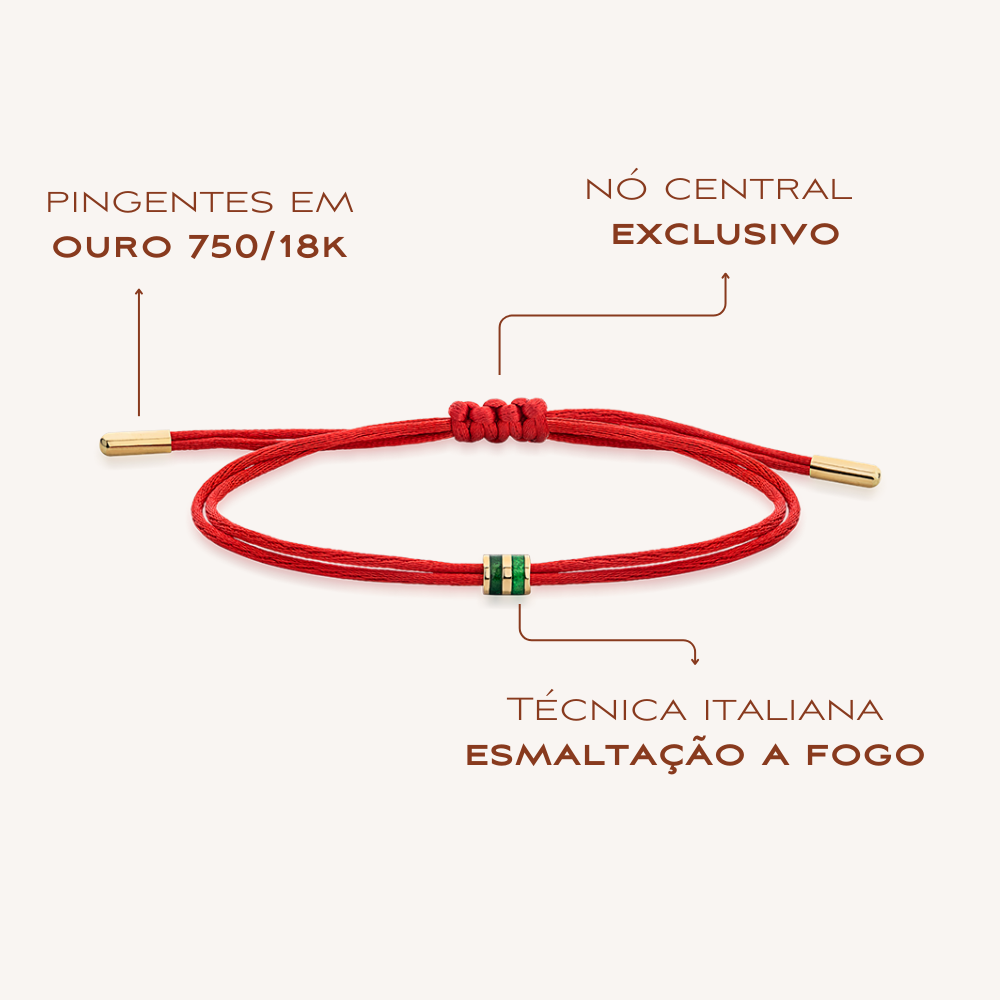 A joia do momento: Pulseira em Fio de Seda Vermelho Duplo com Pingente em Ouro 750/18K