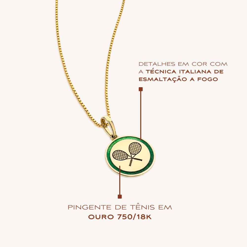 Pingente de Raquete de Tênis em Ouro 18k - 15:40