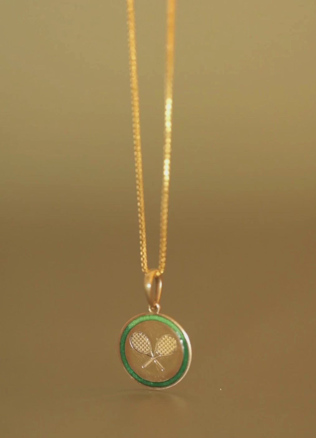Medalha em Ouro 18k com raquetes de tênis. Joia que une esporte, elegância e exclusividade. Ideal para quem vive o estilo tennis.