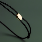 Joia exclusiva: pulseira fio de seda preto com medalha em ouro 18k. Um amuleto de equilíbrio e status.