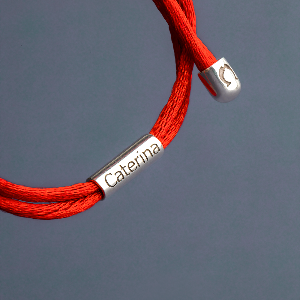 Presente personalizado para datas marcantes: pulseira em fio de seda e pingentes em prata 925 com gravação e design elegante.