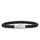 Pulseira Masculina de Couro Preto e Prata 950 - 9:40