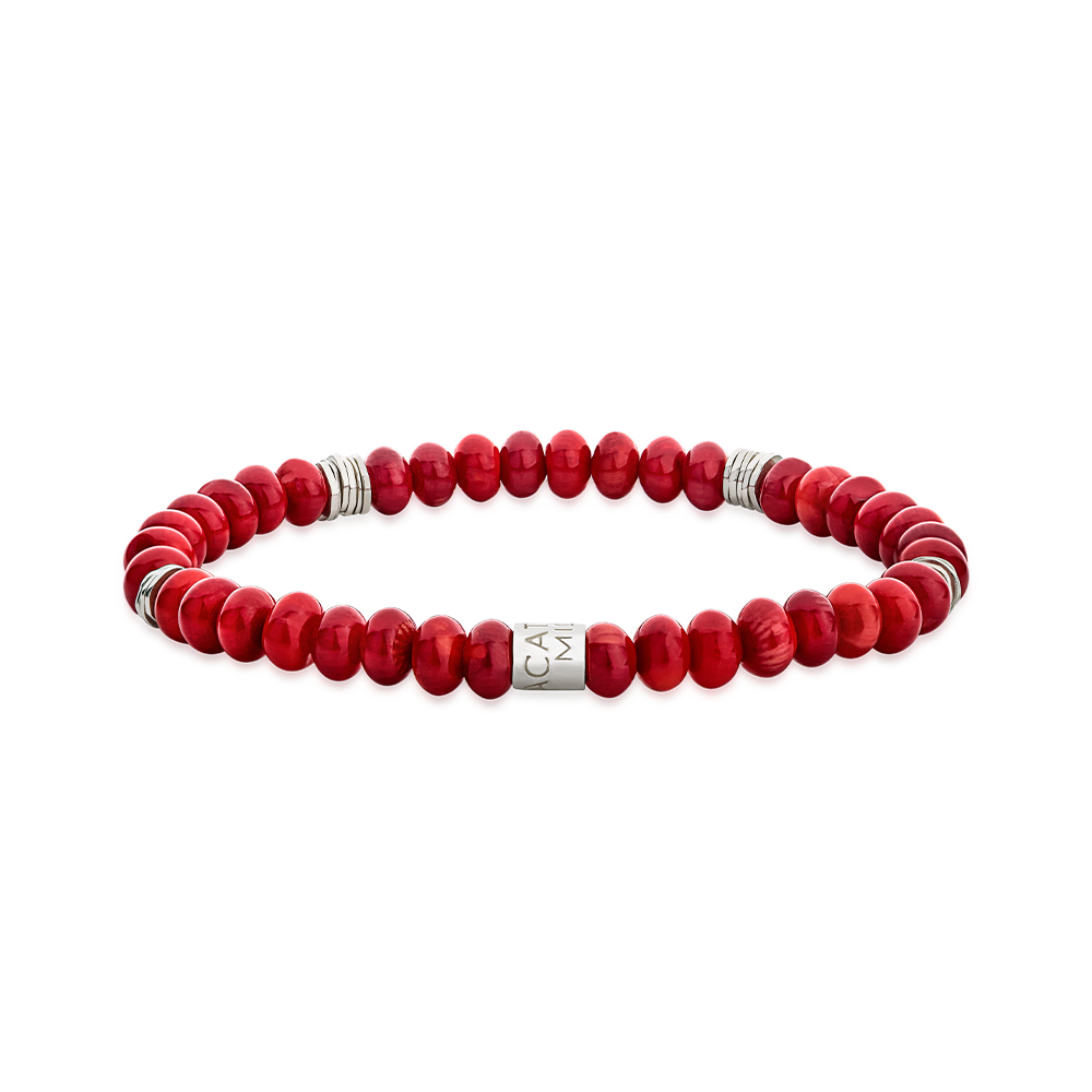 A pulseira em Coral Vermelho traz energia vibrante e proteção, combinando a força da pedra natural com a sofisticação dos Discos de Prata 925.
